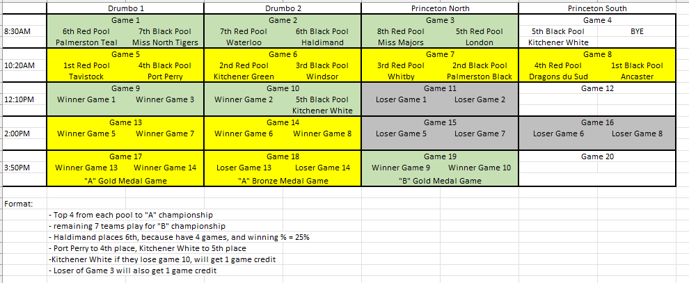 PLAYOFF FORMAT POSTED BELOW DUE TO RAIN. THIS IS NOW THE OFFICIAL SCHEDULE